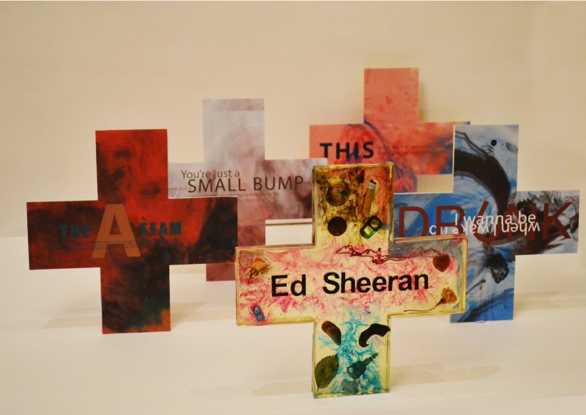 In this project I have designed an album packaging for ‘Ed Sheeran’. I chose his album called plus. Ed Sheeran’s album is full of a mixture of emotions, so I’ve experimented with colours and splash texture patterns to help depict this. The album cover is created with crystal resin and ink.